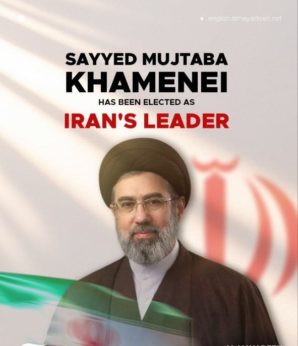 Ayatollah Sayyed Mojtaba Khamenei, Son of martyr Ayatollah Sayyed Ali Khamenei, has been chosen as the new supreme leader of Islamic Republic of Iran by the majority vote of the assembly of experts.
